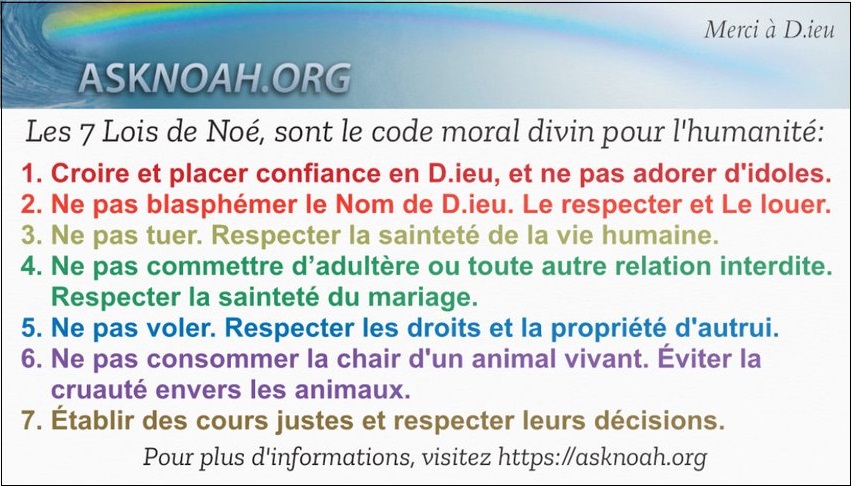French 7 Laws of Noah Card, back blank, shipping only in the U.S. $18.50