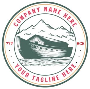 Vintage Retro Floating Wooden Noah Ark Ship Boat Vessel on the Ocean Sea Badge Emblem Label Design